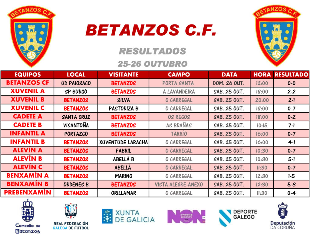 Resultados encontros 25-26 outubro